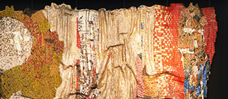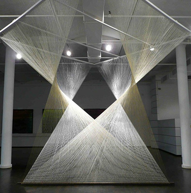 英国艺术家Mhairi Vari对于当今信息社会的数据信息和交流手段有着浓厚的性趣。这件名为“LOL Memory"的作品由丝绸领带、袜子、纪念日回形针等长短不一的材料制成。
